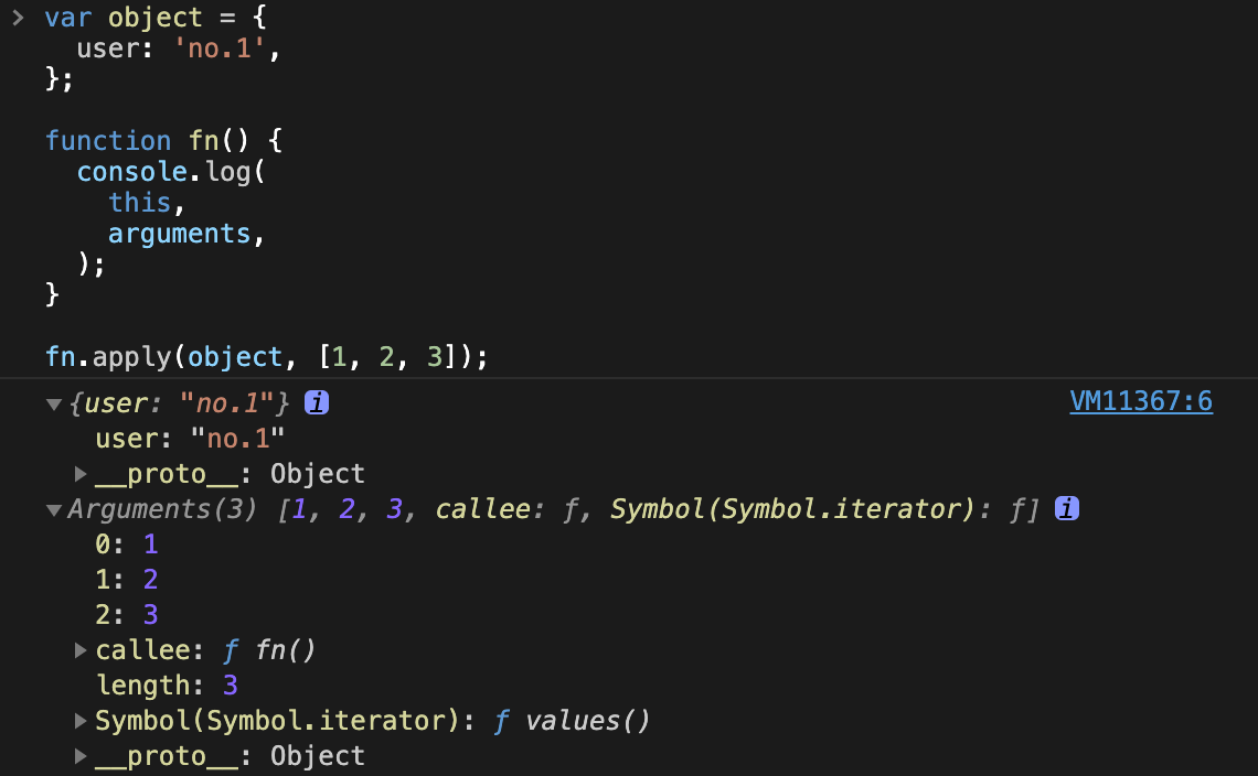 通过 arguments 关键字就可以看到当前函数的参数,通常在需要修改 this ,又不确定参数的情况下,会使用 apply 来修改 this。