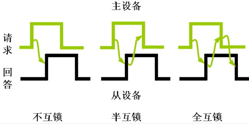 7、画图说明异步通信中请求与回答有几种互锁关系。