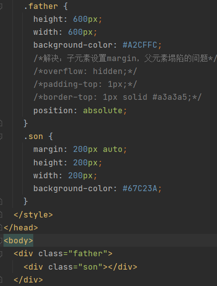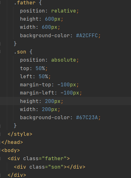 方法二:(position + margin)子元素绝对定位,父元素相对定位