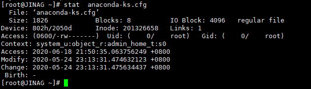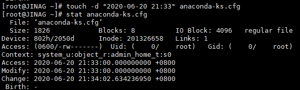 修改文件时间戳:touch -d "2020-06-20 21:33" anaconda-ks.cfs