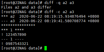 -q 显示比较后的结果,-c 描述文件内容具体不同