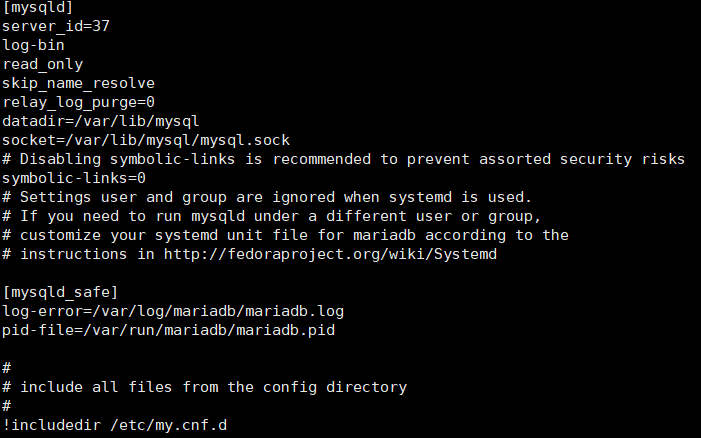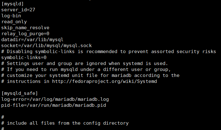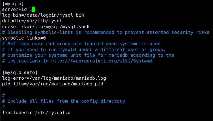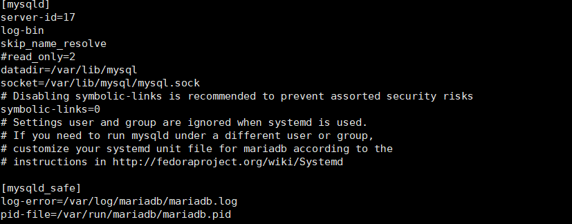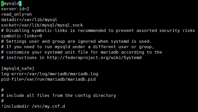 [root@centos7 ~]# vim /etc/my.cnf 设置主配置文件
