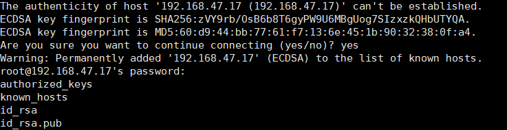[root@centos7 ~]# scp -r .ssh 192.168.47.17:/root/