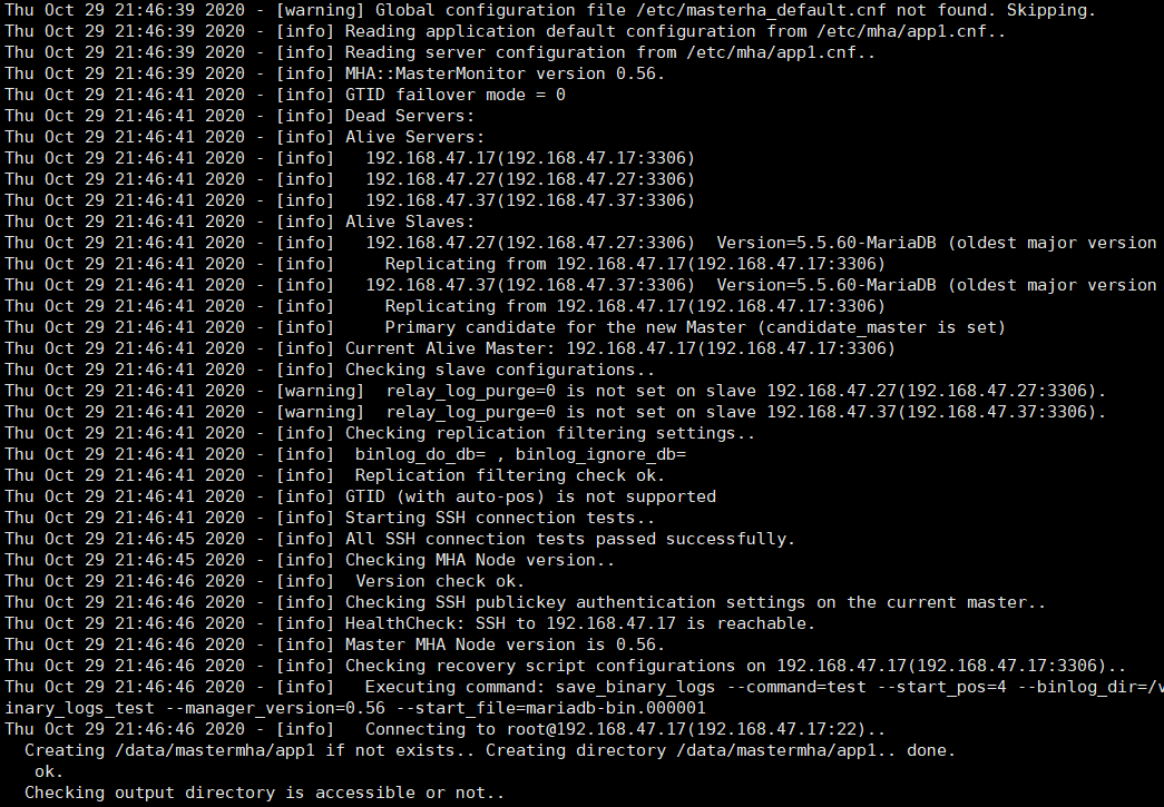 [root@centos7 ~]# masterha_check_repl --conf=/etc/mha/app1.cnf 检查复制状况