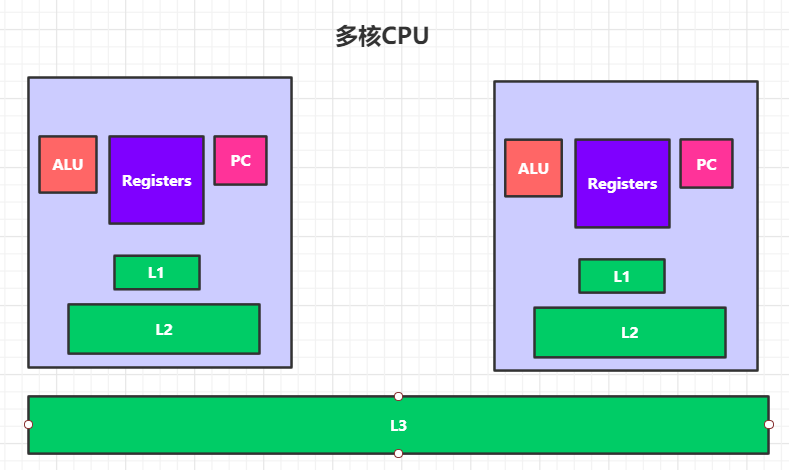 CPU到主内存,之间要经过多层缓存(L1,L2,L3)