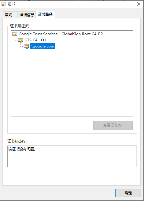 可以看到证书路径是GlobalSign Root CA-R2 -> GTS CA 1O1->*.google.com。因为我们的浏览器信任GlobalSign Root CA,根据信任链机制,你相信了根CA颁发的证书,也要相信它签名的子CA颁发的证书,也要相信子CA签名的子子CA的证书…而我们通过一级级的校验,如果从根证书到最下层的证书都没有被篡改过,我们就相信最下层的这个服务器证书是合法的。所以在这个机制中,你就需要无条件的相信根证书的颁发机构。