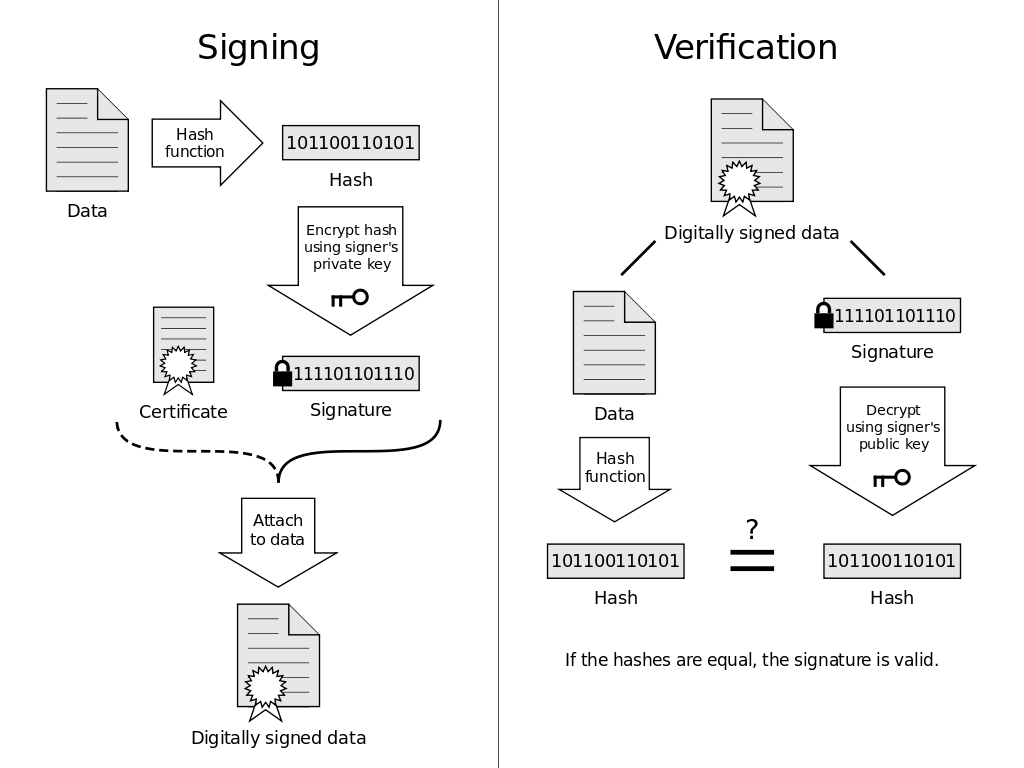 浏览器首先用哈希函数对明文信息的摘要做哈希得到一个哈希值(用到的就是证书中的签名哈希算法SHA256),然后用根CA的公钥对根证书的签名作解密得到另一个哈希值(用到的算法就是RSA非对称算法),如果两个哈希值相等则说明证书没有被篡改过。当然还需校验证书中服务器名称是否合法以及验证证书是否过期.