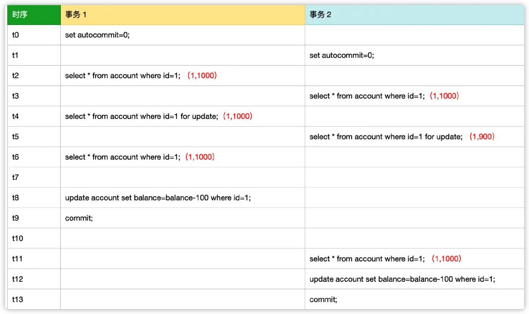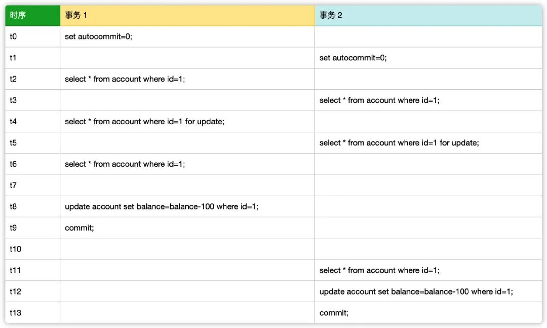 下面我们来重现并发这种情况,假设有两个事务正在发执行该语序,执行顺序如图所示。