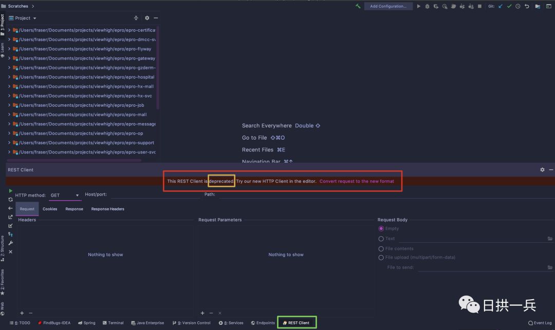 上图已给出提示,REST Client 是被弃用的,点击右侧的 Convert request to new format , 进到下面界面: