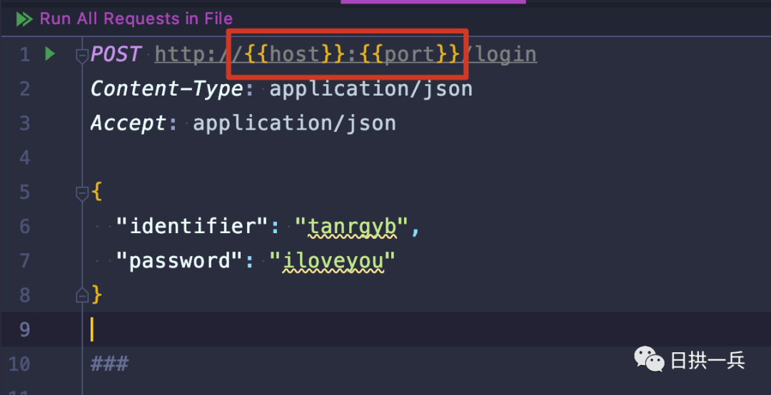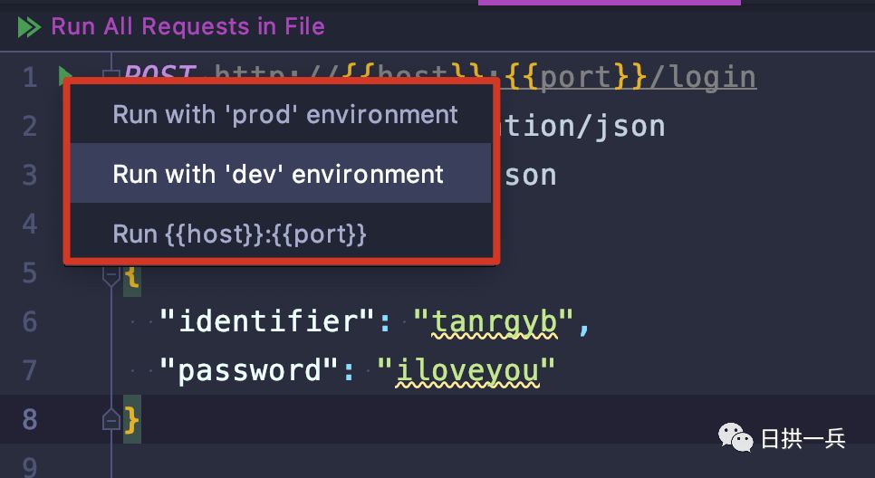 rest-client.env.json或者http-client.env.json的环境文件(其实里面就是保存 JSON 数据),该文件里可以定义用在整个项目上的所有常规变量 - 创建名为