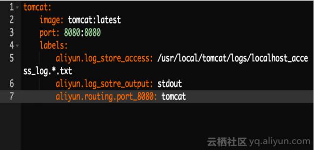 比如在容器服务上面布一个tomcat,可能会写如图的一个标准Docker的模板。
