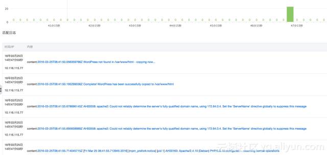 当你通过部署之后,就可以在日志服务上面看到会生成两个东西,都是创建好的,加一些前缀来区分,不用管一些配置,你唯一要做的事是什么呢?点日志索引查询,然后到日志搜索界面,刚才启动的时候一些日志,可以看到从哪过来的,这条日志的内容是什么,这些信息都已经很快的出现了,包括需要检索可以选中一个时间段,输入关健词去做一些搜索,自动在日志服务上创建并配置logstore。