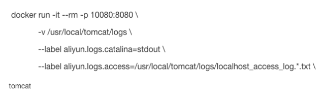 配置好之后启动应用,我们看应用上面要收集的日志,我该在上面做什么样的声明?关键的配置有两个,一是label catalina,声明的时候要收集容器的日志,所有的名字都可以;二是声明access,这也是个名字,都可以用你喜欢的名字。这样一个路径的地址,当你通过这样的配置来去启动fluentd-pilot容器之后,它就能够感觉到这样一个容器的启动事件,它会去看容器的配置是什么,要收集这个目录下面的文件日志,然后告诉fluentd-pilot去中心配置并且去采集,这里有一个-V,实际上跟Logs是一致的,在容器外面实际上没有一种通用的方式能够获取到容器里面的文件,所有我们主动把目录从宿主机上挂载进来,这样就可以在宿主机上看到目录下面所有的东西。