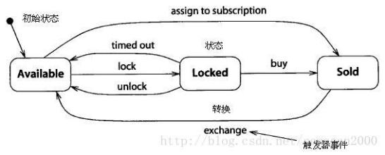 4.状态机视图: 状态机视图是一个类对象可能经历的的所有历程的模型图。状态机由对象的各个状态和连接这些状态的转换组成。每个状态对一个对象在其生命周期中满足某种条件的一段时间段建模。当一个事件发生时触发状态的转换,从一个状态转化为另一个状态。