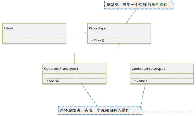 使用原型实例指定待创建对象的类型,并且通过复制这个原型来创建新的对象。
