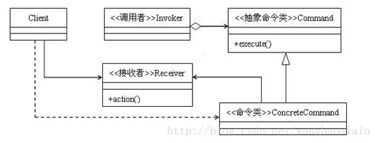 将一个请求封装为一个对象,从而使你可用不同的请求对客户进行参数化;对请求排队或记录请求日志,以及支持可撤销的操作。别名动作(Action),事务(Transaction)。和很多设计模式一样,命令模式在你的请求和处理之间加上了一个中间人的角色,来达到分离耦合的目的。