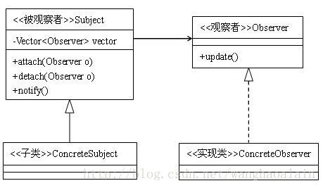 (2)Observer(观察者角色):为那些在目标发生改变时需要更新的对象定义一个更新接口。