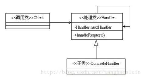 (2)ConcreteHandler:处理它负责的请求,可访问它的后继者;如果可处理请求就处理,否则将请求转发给它的后后继者。