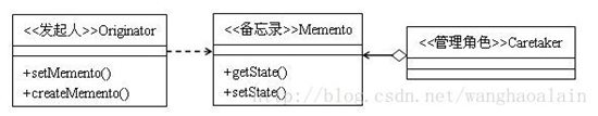 (3)Caretaker(管理器,备忘录管理者角色):负责管理备忘录,不能对备忘录的内容进行操作或检查。