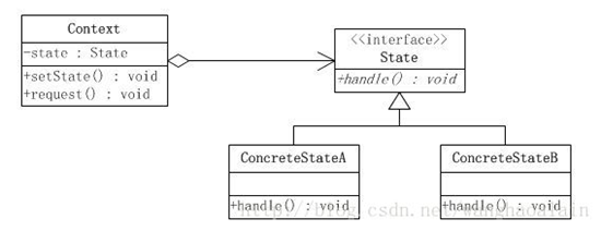 协作:Context将与状态相关的请求委托给当前的ConcreteState对象处理,也可将自身作为一个参数传递传递给以处理该请求的状态对象,从而使状态对象在必要时可访问Context。Context是客户使用的主要接口,客户可用状态对象来配置一个Context,一旦Context配置完毕,它的客户不再需要直接与状态对象打交道。Context和ConcreteState子类都可决定哪个状态时另外哪一个状态的后继者,以及在何种条件下进行状态转换。