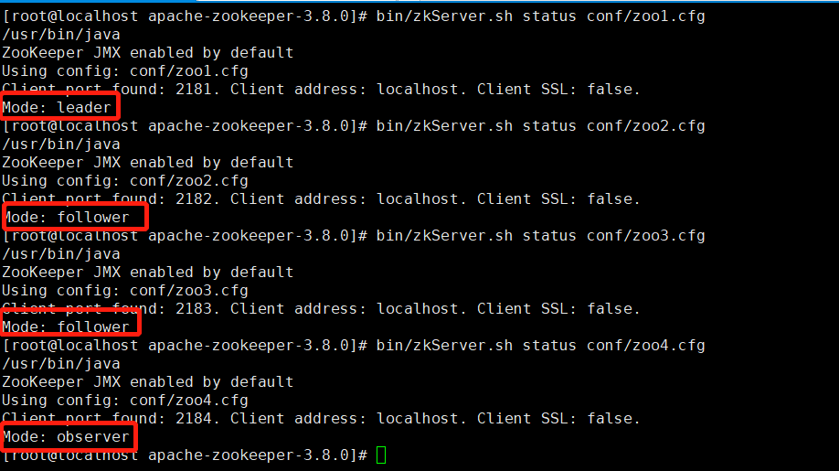 其中2001、2002、2003、2004端口是zk集群数据同步的端口,由leader将数据同步到其他节点