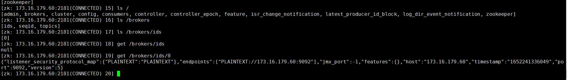 #broker.id属性在kafka集群中必须要是唯一 broker.id=0 #kafka部署的机器ip和提供服务的端口号 listeners=PLAINTEXT://173.16.179.60:9092 #kafka的消息存储文件 log.dirs=/usr/local/data/kafka-logs #kafka连接zookeeper的地址 zookeeper.connect=173.16.179.60:2181