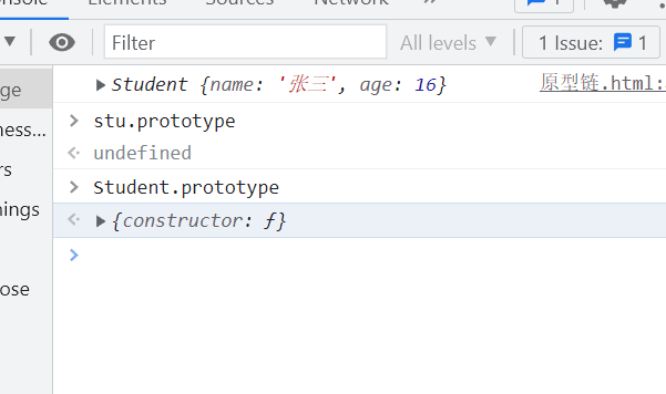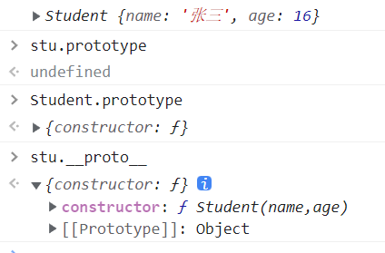 这个stu对象中是没有prototype属性的,prototype属性只有在构造函数students中有