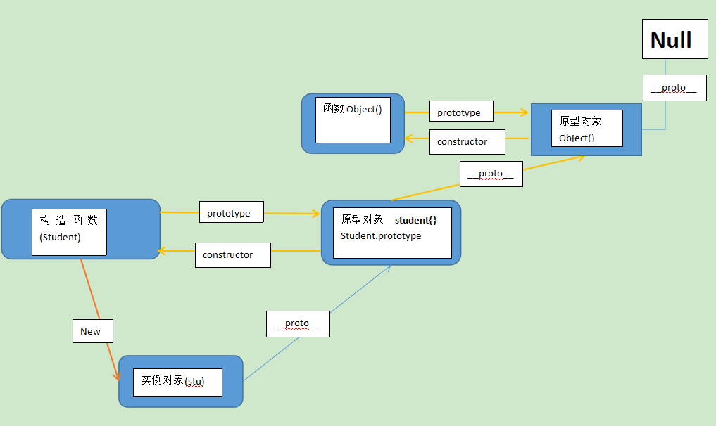 又因为Student.prototype是一个普通的对象,它的构造函数是Object,所以:
