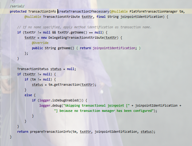 也就是我们认为的如果当前有事务,就用当前事务,就会进入if条件,走进去