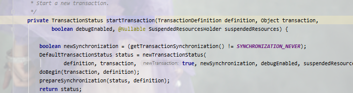 prepareTransactionStatus(definition, transaction, false, false, debugEnabled, null);