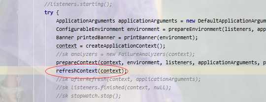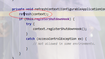 进入 refreshContext(context)方法 目的就是启动spring 容器,跟进去