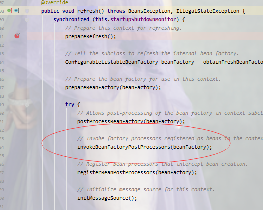 invokeBeanFactoryPostProcessors方法