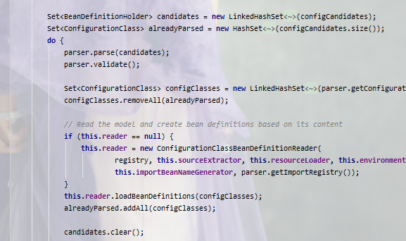 进入后置处理器 ConfigurationClassPostProcessor.processConfigBeanDefinitions()方法