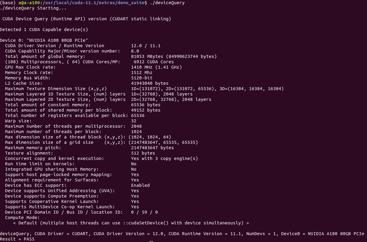 (108) Multiprocessors, (64) CUDA Cores/MP: 6912 CUDA Cores