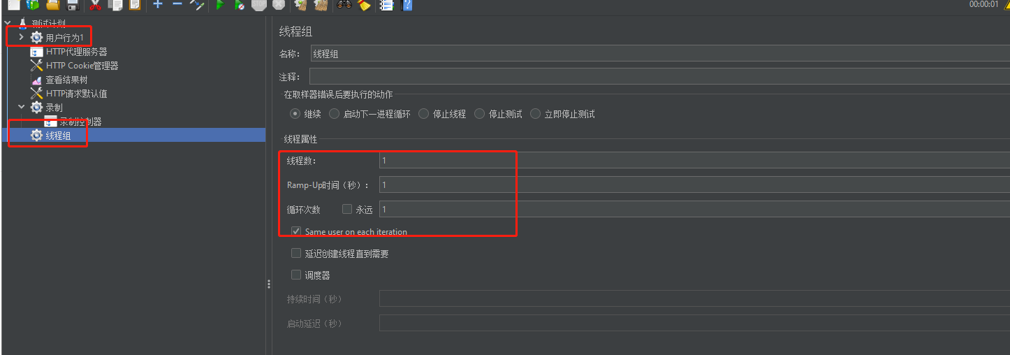 循环次数 : 每个用户 做线程组里面定义的动作行为 多少轮 。 缺省就做一轮