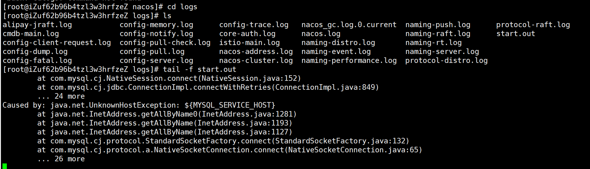 发现nacos启动报错,原因是启动容器的时候没配置mysql地址,根据自己情况配置