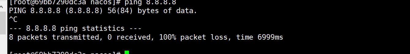 配置后发现Caused by: java.net.SocketTimeoutException: connect timed out,但是我该配置文件在本地是可以使用的。推测容器可能连不上宿主机,尝试ping宿主机ip后ping不通,ping 8.8.8.8也ping不通.