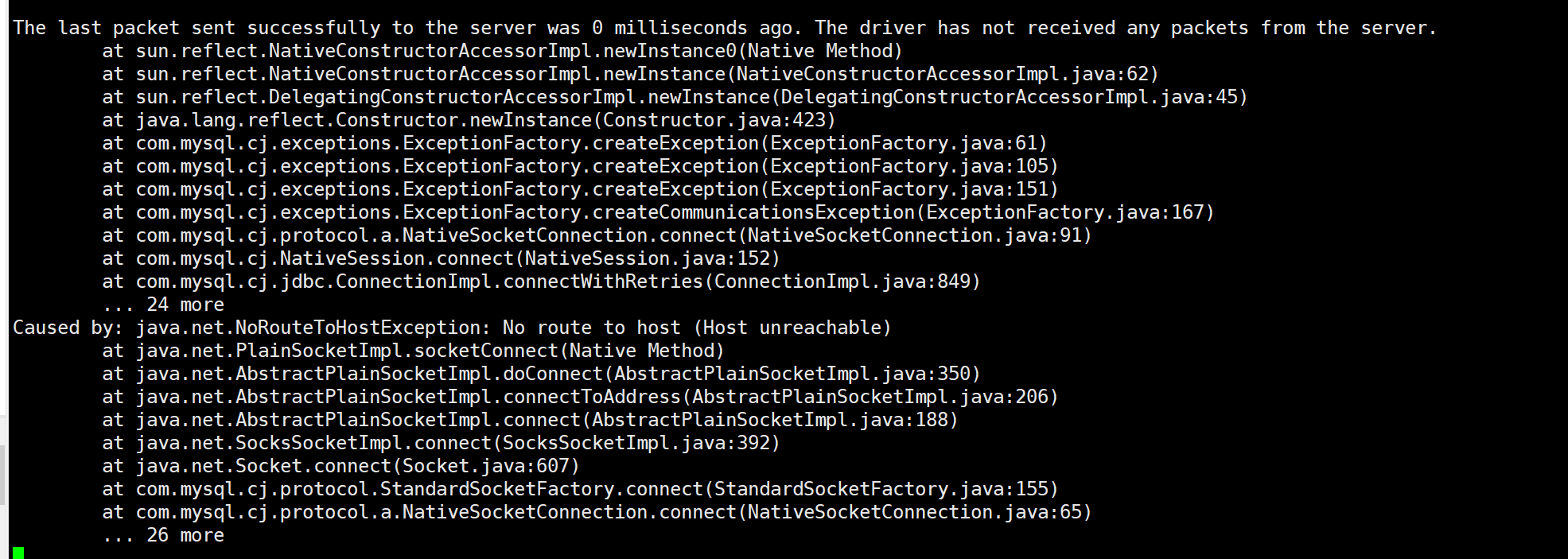 多番尝试后将数据连接地址改成172.18.0.2(mysql容器IP,原本使用阿里云外网地址)即可正常启动(mysql也是使用docker安装,--net=Bridge模式),这是容器间的通讯问题,暂时不了解。
