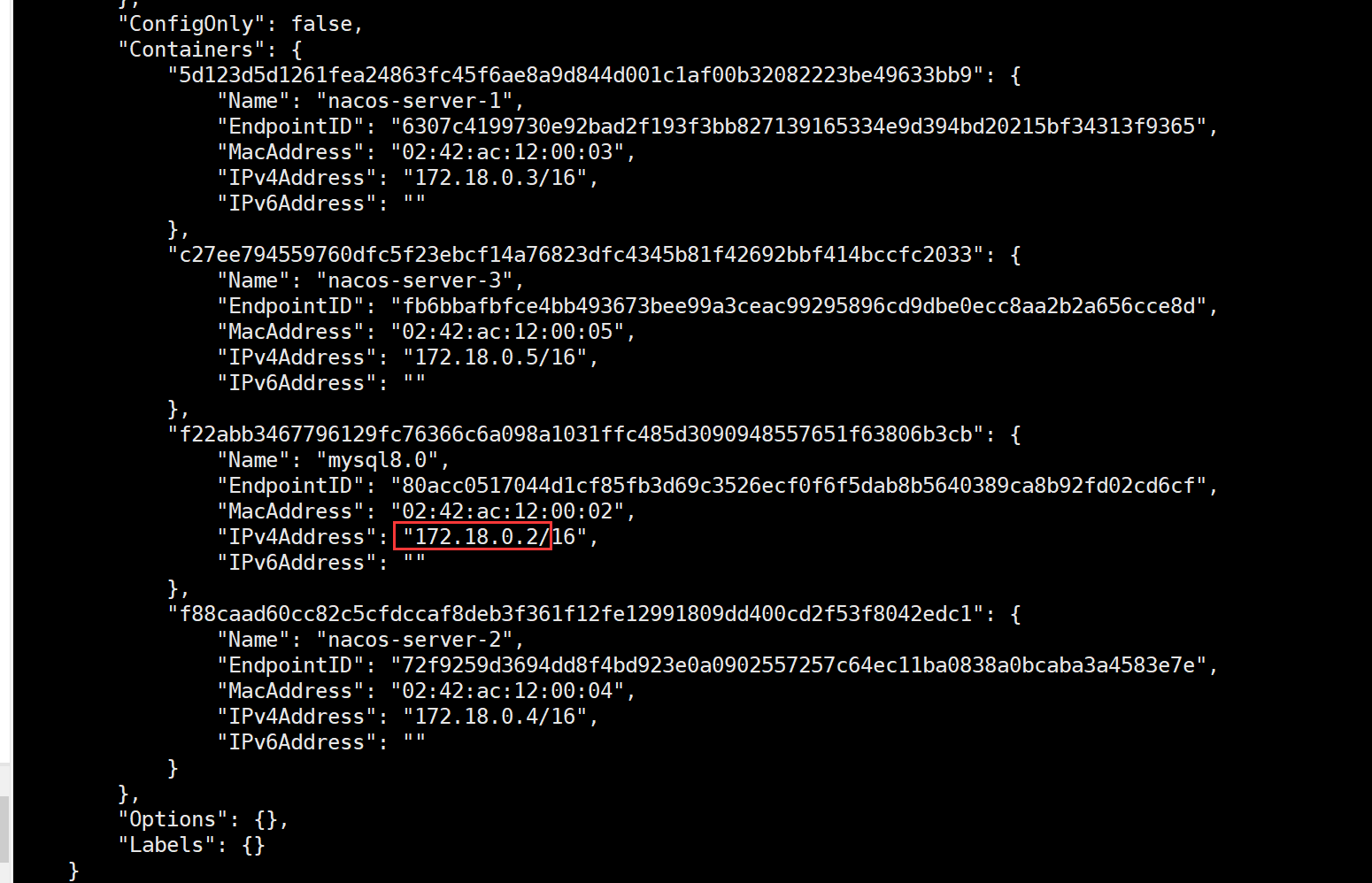 docker network inspect self_network #获取网络的元数据。db_url 中ip地址如下