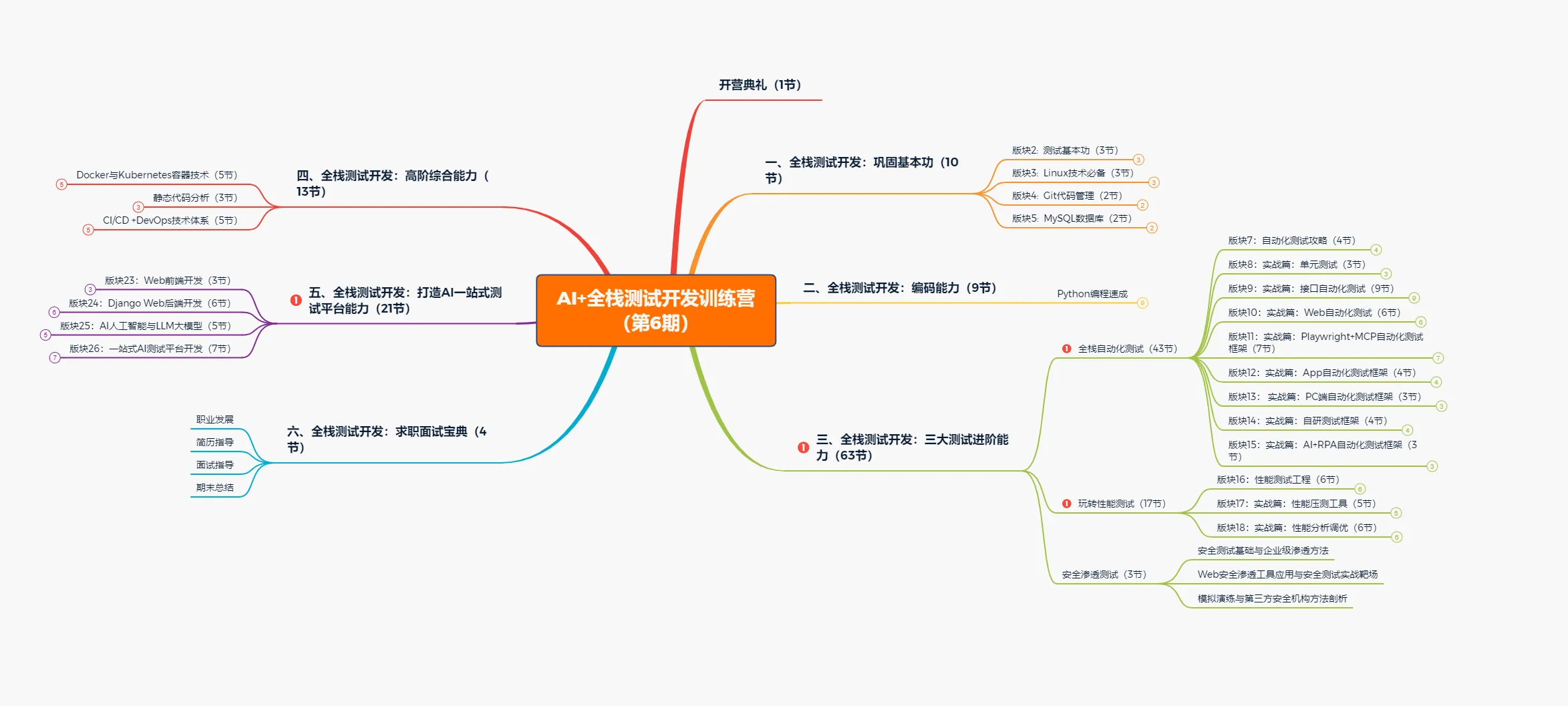 本期训练营以 “AI + 全栈测试开发” 为核心,课程设计兼顾理论与实战项目演练、行业专家的指导,学习内容从基础原理到前沿技术全覆盖,这就决定了它适配不同经验层次的人群。