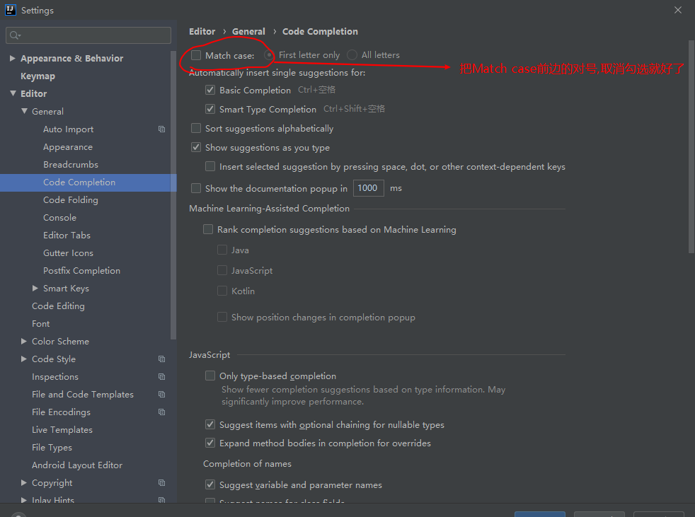 以前用的是vs写c#程序,代码提示和补充功能是不区分大小写的,工作需要换成了,java,又开始从新学java,发现idea,代码提示和补充功能还区分大小写,很不舒服。然后改了一下配置,顺便做个记录。