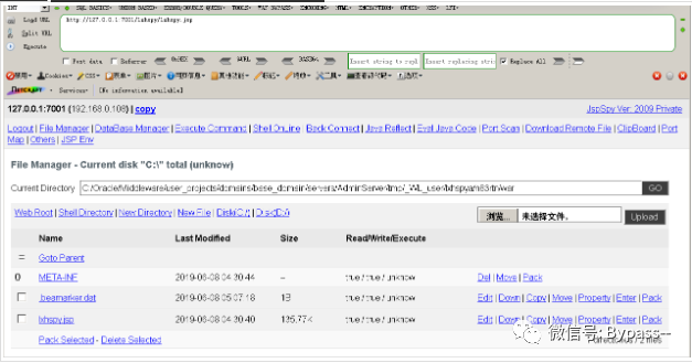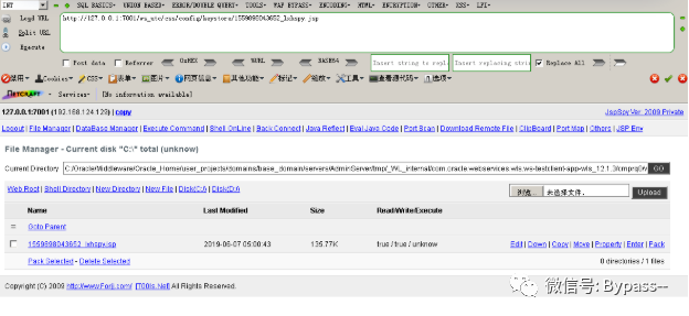 访问 ws_utc/config.do,设置Work Home Dir为ws_utc应用的静态文件css目录C:\Oracle\Middleware\Oracle_Home\user_projects\domains\base_domain\servers\AdminServer\tmp\_WL_internal\com.oracle.webservices.wls.ws-testclient-app-wls_12.1.3\cmprq0\war\css,因为访问这个目录是无需权限的,提交后,点击左侧 安全-> 添加,然后上传Webshell。