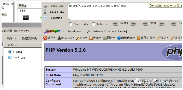 IIS7.x版本 在Fast-CGI运行模式下,在任意文件,例:test.jpg后面加上/.php,会将test.jpg 解析为php文件。