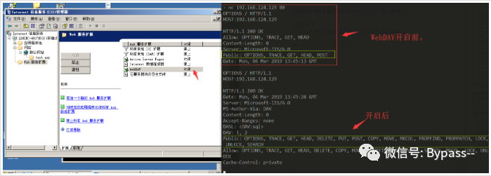 IIS Server 在 Web 服务扩展中开启了 WebDAV之后,支持多种请求,配合写入权限,可造成任意文件写入。