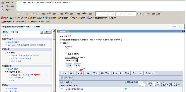 4、安装完成之后,点击保存主配置,然后回到WebSphere 企业应用程序,选中war包启动,访问shell。