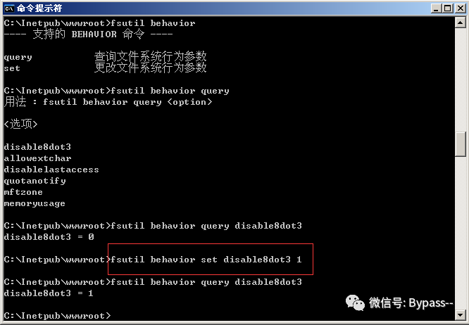 查询是否开启短文件名功能:fsutil 8dot3name query