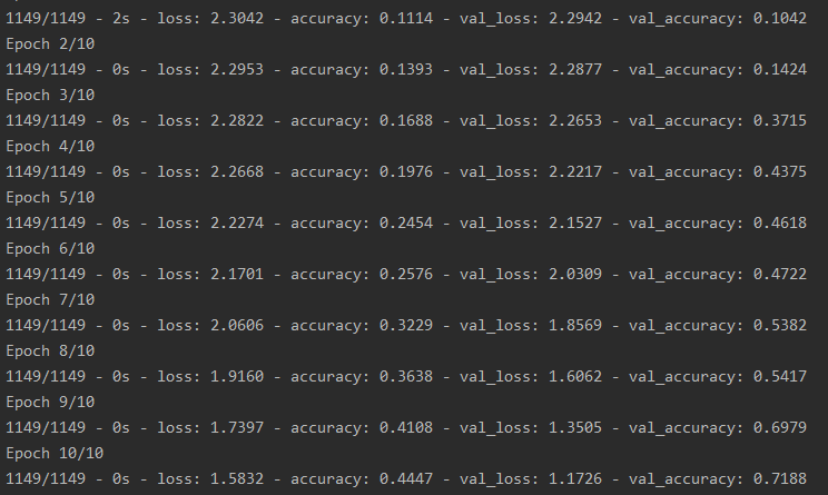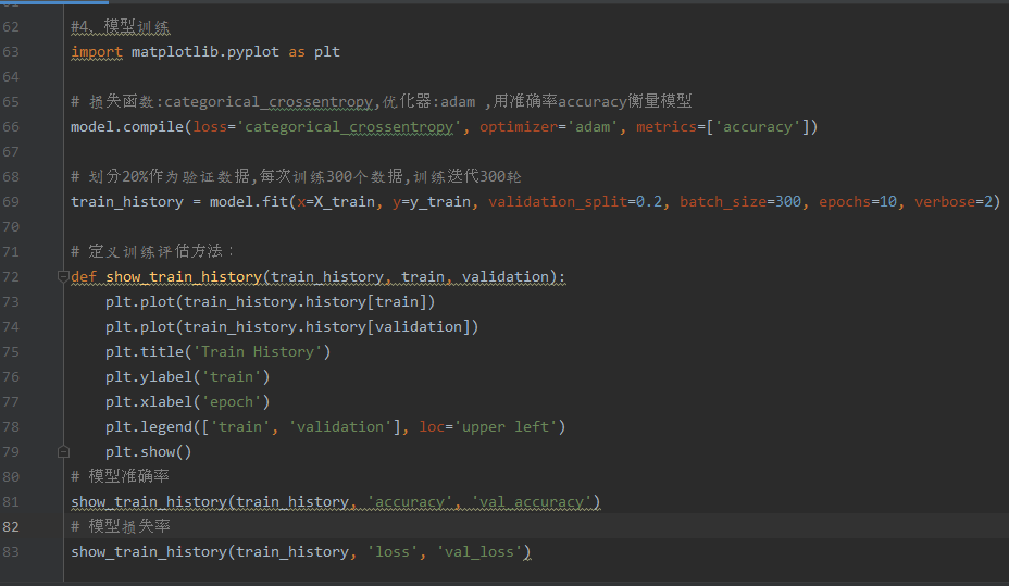 - train_history = model.fit(x=X_train,y=y_train,validation_split=0.2, batch_size=300,epochs=10,verbose=2)
