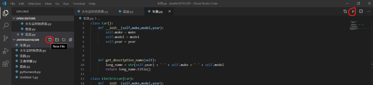 点开以后,点击new file按钮,创建一个文件,这时你就可以在这里写你想写的代码了,在代码完成后,利用CTRL+S保存文件,再点击右上角的按钮运行文件,此时就可以看到你的代码运行出来的结果了。