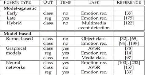 4、融合(Fusion):结合来自两种或多种模态的信息来执行预测(join information from two or more modalities to perform a prediction)