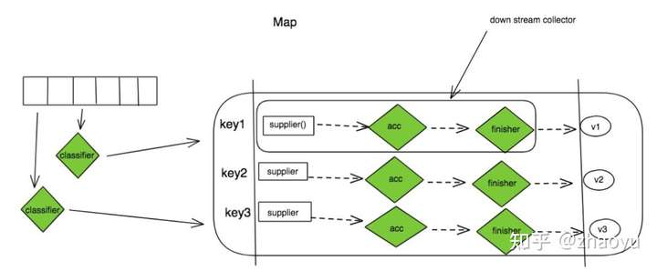 - groupingBy(Function, Collector) - 分key后,对每个key的元素进行后续collect操作